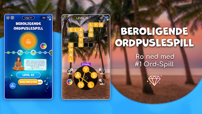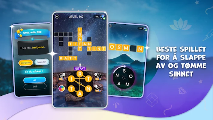 Beroligende Ordpuslespill tar deg med på en avslappende reise til verdens vakreste steder. Løs utfordrende, men beroligende ordpuslespill som engasjerer sinnet og skaper en følelse av indre ro. En vanedannende opplevelse for alle ordspillelskere.