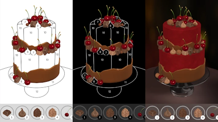 Oppdag en unik form for kreativitet med dette engasjerende spillet, der utsøkte kaker blir levende i full 3D. Hver eneste kake er et mesterverk som venter på din personlige touch. Med intuitive kontroller kan du enkelt sveipe for å rotere disse fantastiske dessertene og tappe for å fylle inn farger, bit for bit. Det er et herlig fargeleggingspuslespill hvor målet er å avsløre hele bildet ved å finne og fargelegge alle de skjulte delene. Skulle du trenge litt hjelp på veien, er hint tilgjengelige for å veilede deg raskt til de vanskeligste detaljene.