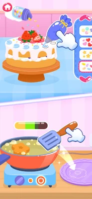 I **Barnas matlagingsspill** blir barna introdusert for alle verktøyene og ingrediensene en ekte konditor trenger. Fra å samle riktige råvarer som egg, melk og mel i en bolle, til å vispe dem sammen og se deigen heve i ovnen, er hvert steg en spennende del av læringsprosessen. Den intuitive designen og den fargerike grafikken gjør det enkelt og engasjerende å navigere, samtidig som spillet stimulerer finmotorikken, fremmer logisk tenkning og styrker hukommelsen på en leken måte.