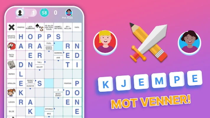 Opplev spenningen med Kryss, et fengslende ordspill for to! Test din fantasi og utvid ordforrådet mens dere bygger på et felles kryssordbrett. Kryss gir deg en underholdende og mental utfordring, perfekt for venner og familie som elsker ord.