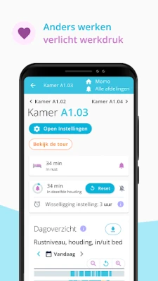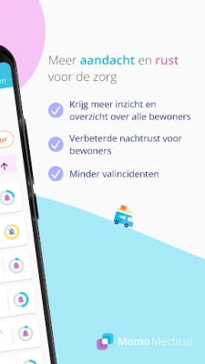 Med **Momo BedSense App** får omsorgspersonalet en intuitiv sanntidsoversikt som alltid er oppdatert. Se øyeblikkelig hvem som er i eller ute av seng, vurder klientenes hvilenivå, og spor hvor lenge de har holdt samme stilling – alt på én skjerm. For dypere innsikt tilbyr appen detaljerte romoversikter per klient, som presenterer daglige, ukentlige trender og gjennomsnitt. Denne verdifulle dataen gjør det enklere å identifisere individuelle atferdsmønstre og oppdage uvanlige hendelser raskt, slik at intervensjon kan skje før en situasjon eskalerer. Spesifikke varsler kan konfigureres for hendelser som å være ute av seng eller behov for stillingsendring, noe som gir nattvakter ro i sjelen og sikrer at hjelpen alltid er der når den trengs mest.