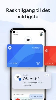 Med Google Wallet får du rask og trygg tilgang til alt viktig i hverdagen. Bruk telefonen for kontaktløse betalinger med Google Pay, eller ha boardingkortet ditt klart. Samle alt trygt på ett sted, alltid tilgjengelig på telefonen din.