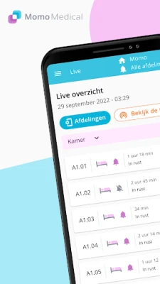 Med **Momo BedSense App** får omsorgspersonalet en intuitiv sanntidsoversikt som alltid er oppdatert. Se øyeblikkelig hvem som er i eller ute av seng, vurder klientenes hvilenivå, og spor hvor lenge de har holdt samme stilling – alt på én skjerm. For dypere innsikt tilbyr appen detaljerte romoversikter per klient, som presenterer daglige, ukentlige trender og gjennomsnitt. Denne verdifulle dataen gjør det enklere å identifisere individuelle atferdsmønstre og oppdage uvanlige hendelser raskt, slik at intervensjon kan skje før en situasjon eskalerer. Spesifikke varsler kan konfigureres for hendelser som å være ute av seng eller behov for stillingsendring, noe som gir nattvakter ro i sjelen og sikrer at hjelpen alltid er der når den trengs mest.
