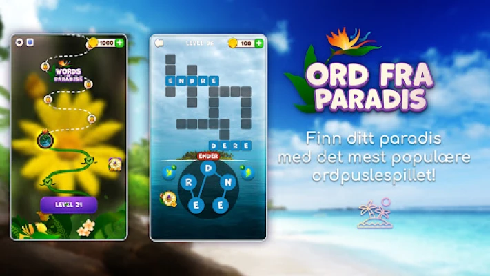 Ditt eventyr med Ord fra Paradis utspiller seg gjennom over 5000 unike nivåer og tar deg med til mer enn 300 fantastiske steder du kanskje aldri har sett før. Fra de mest utfordrende kryssordene til enkle forbindelser, vil du kontinuerlig bygge ord ved å sveipe fingeren over bokstavene – ingen tastatur er nødvendig! Og det beste av alt? Hele denne omfattende opplevelsen er fullstendig gratis. Vi er stolte av å tilby et spill uten skjulte betalingsmurer, en filosofi vi opprettholder både nå og i alle fremtidige oppdateringer, slik at alle kan nyte det uten begrensninger.