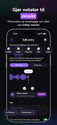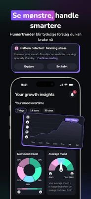 Seruna samler en komplett verktøykasse for egenomsorg. Følg humøret ditt med en intuitiv dagbok og spor mønstre med innsiktsfulle grafer. Utforsk et bibliotek av norskspråklige meditasjoner, pusteøvelser og beroligende søvnlyder for bedre hvile. Dykk inn i CBT-øvelser for å utfordre tankefeller, styrk positiv tenkning med affirmasjoner og noter ned takknemlighet i journalen. Du kan også spore vaner og mål, bruke Pomodoro-teknikken for fokus, og motta påminnelser som holder deg på sporet. Trenger du litt ekstra støtte, tilbyr Seruna et fellesskap hvor du kan dele og motta uten press.